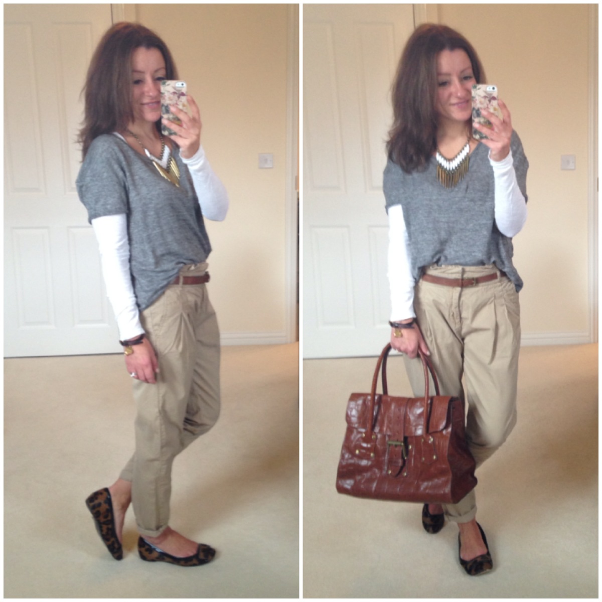 - Mel - A versatile long top recently bought from H&M and wedge tan boots from Next last year and an armful of gold bangles.